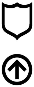 Symbol uległego mężczyzny – okrąg. Okrąg symbolizuje łańcuch na szyi / obrożę – symbol poddania Pani. Jest to informacja, że Uległy należy do jakiejś Pani. Okrąg może oznaczać również kontrolę jaką Pani ma nad swoim uległym mężczyzną oraz jego penisem, który symbolizuje strzałka wewnątrz okręgu. Może on symbolizować więc również pas cnoty, za pomocą którego Pani kontroluje rozkosz Uległego oraz każdy obszar jego życia.
